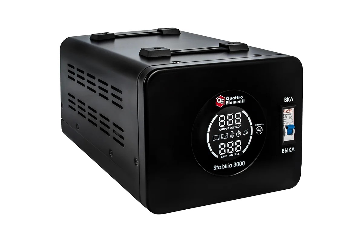 - Стабилизатор напряжения напольный QUATTRO ELEMENTI Stabilia 3000(3000ВА,140-270В) 917-674