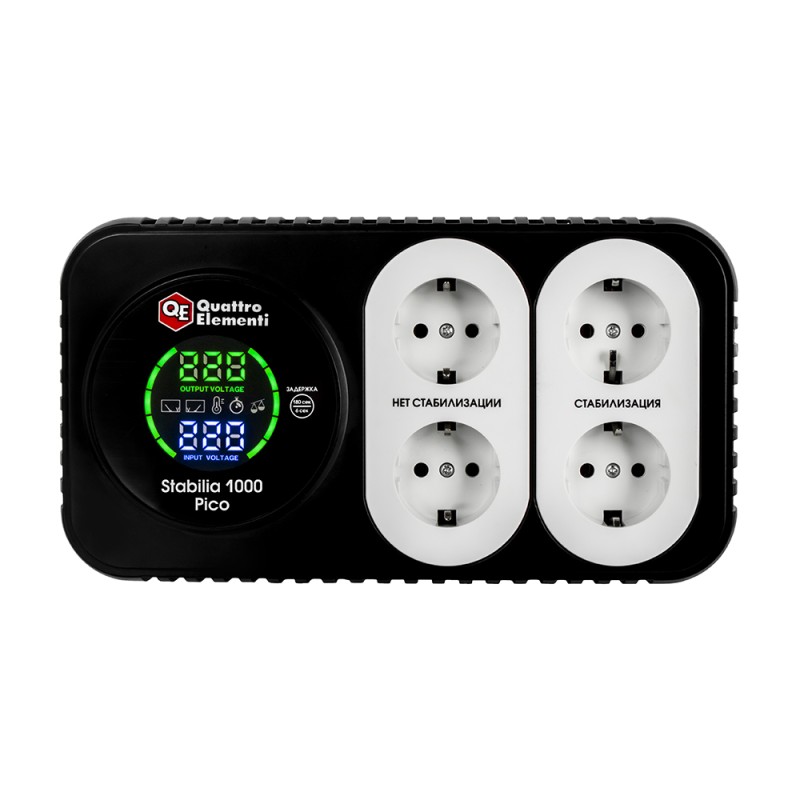 - Стабилизатор напряжения настольный QUATTRO ELEMENTI Stabilia 1000 Pico (1000ВА,160-280В) 917-735