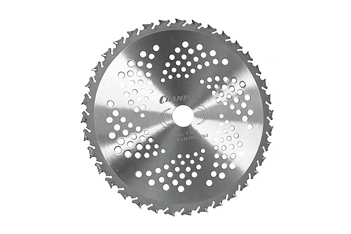 Нож с зубцами из твердого сплава Anti-kick (36 зубьев, 230х25,4 мм) CHAMPION C5122 подходит для работы с профессиональными триммерами с объемом двигателя от 30 см3. Без труда срезает жесткую траву, тонкие деревья и кустарники.Характеристики