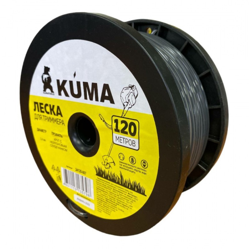 - Леска для триммера с нейлоновым сердечником квадратная KUMA 2,4мм*120м