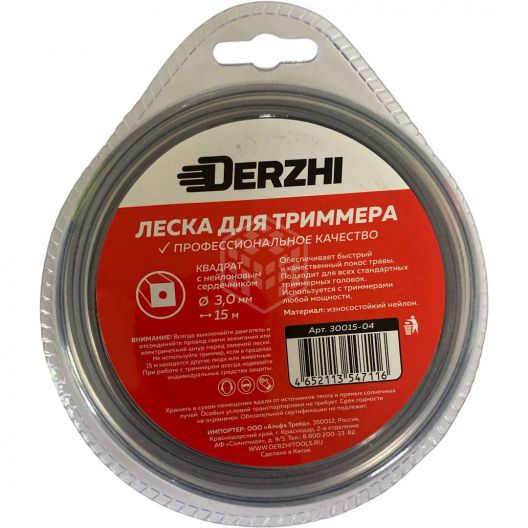 - Леска для триммеров нейлоновый сердечник,скрученный квадрат DERZHI 3,0 15м 30015-08
