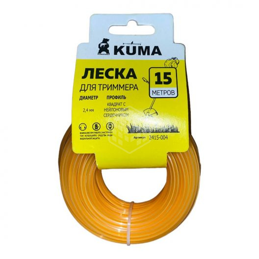 Леска для триммеров KUMA, сс нейлоновым сердечником, квадрат, прозрачная, 2,4 мм, 15 м для качественного покоса травы и используется совместно с триммерами различной мощности в качестве оснастки.Характеристики