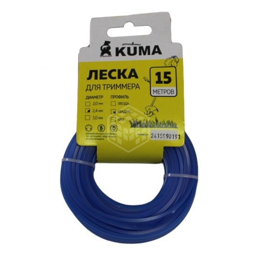 Леска для триммера KUMA, квадратная, 2,4 мм, 15 м отлично подходит для качественного покоса травы и используется совместно с триммерами различной мощности в качестве оснастки.Характеристики