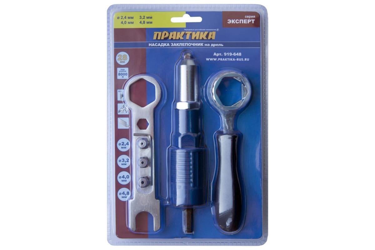- Заклепочник ПРАКТИКА насадка для шуруповерта для заклепок 2,4-4,8 мм