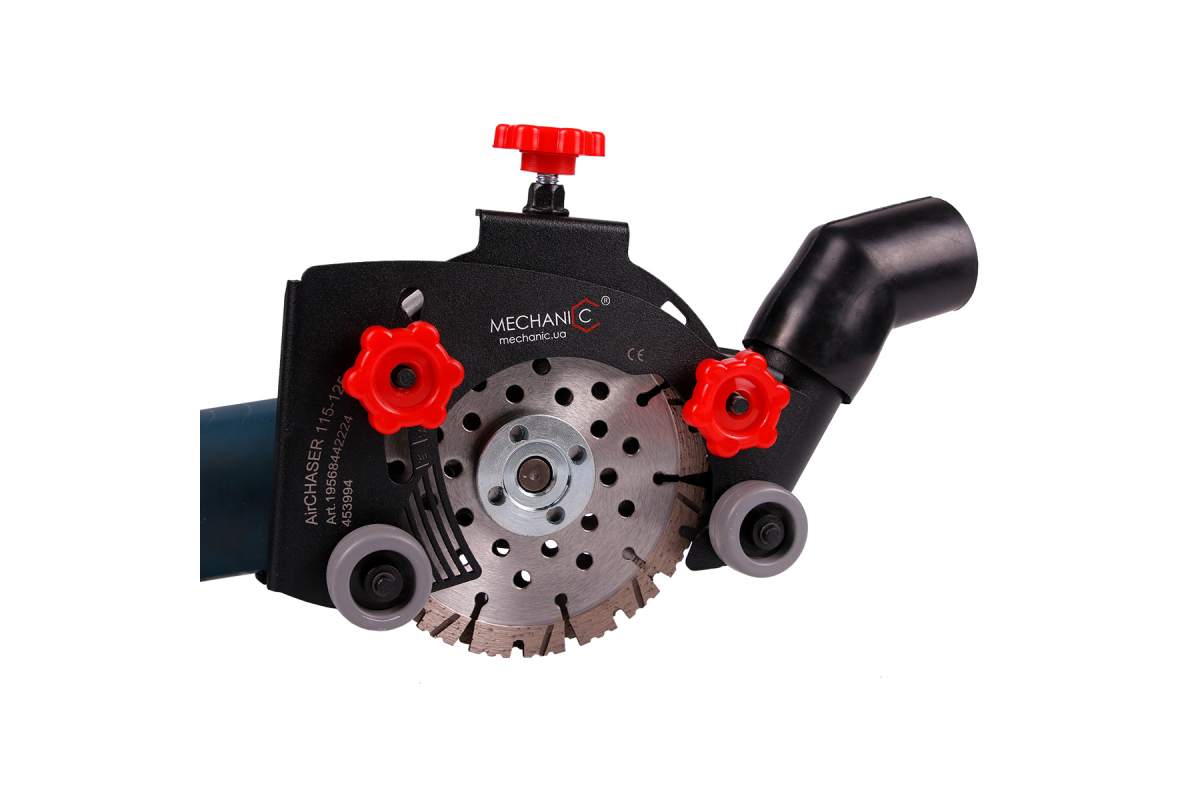 Насадка-штроборез AirCHASER Mechanic предназначена для работы с угловой шлифовальной машиной. Служит для выполнения штроб под проводку, водоснабжение в бетоне, кирпиче и т.д. Изготовлена из качественной высокоуглеродистой стали. Оснащена дистанционной шайбой и зажимной гайкой, которые позволяют зафиксировать сразу два диска. Имеет регулировку глубины реза. Ширина штробы – 12 мм, подходит для эксплуатации в помещениях. Малый вес - 450 грамм, дает возможность работать не уставая продолжительное время.Характеристики