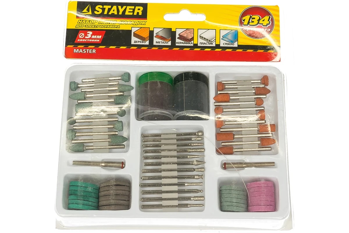 STAYER 134 предм., набор мини-насадок для гравировальных машин (29905-Н134)
