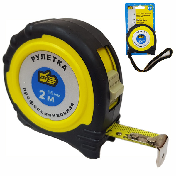 - 888 Рулетка резино-пласт.корпус,утолщ.,дв.фикс.-2м/16мм