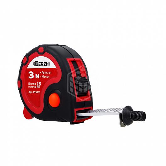 DERZHI BLACK Рулетка магнитный зацеп,обрезиненный корпус 16мм*3м