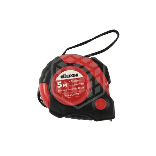 - DERZHI ROUND Рулетка 5м*19мм, автостоп, магн.зацеп, обрезиненный корпус 205019