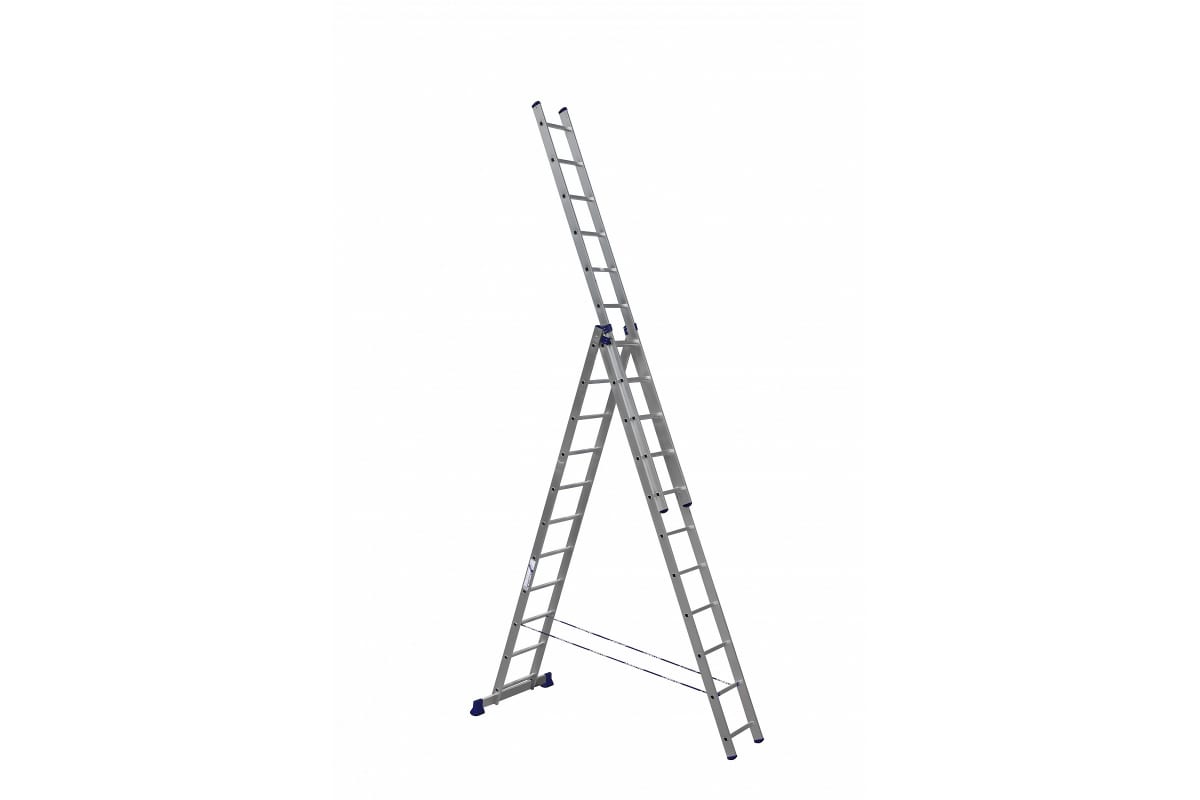 Трехсекционная универсальная алюминиевая лестница Алюмет Серия H3 5311 - это многофункциональное приспособление для разных работ. Может использоваться в приставном варианте, как двухсекционная лестница, а так же в качестве стремянки и в виде раздвижной, телескопической конструкции. Комплектуется страховочными ремешками, что повышает безопасность работ. Двухкомпонентные наконечники, которыми оснащены опоры, защищают лестницу от скольжения во время работы.Характеристики