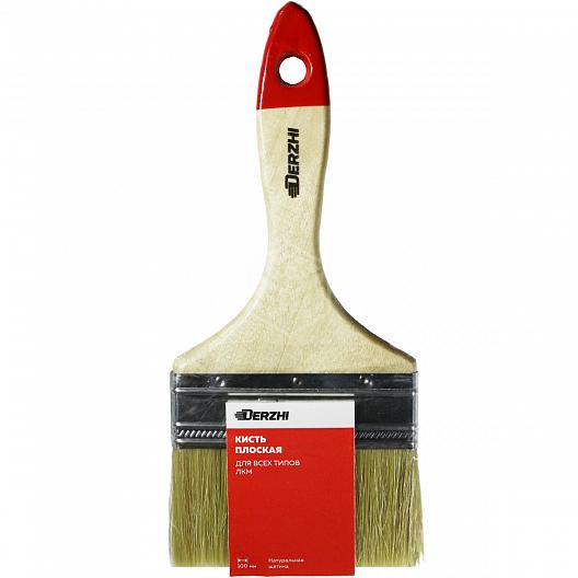 - Кисть плоская DERZHI МАСТЕР, светлая натуральная щетина,деревянная ручка 100 мм 8103-100