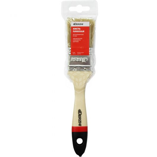 - Кисть плоская DERZHI ПРОФИ, светлая натуральная щетина,деревянная ручка 50 мм 8101-050