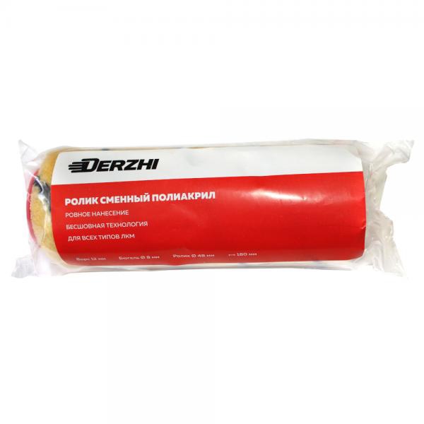 Ролик сменный Derzhi, полиакрил, ворс 12 мм, 48х180 мм представляет собой специальное приспособление, которое используется совместно с бюгелем и необходимо для качественного нанесения различных лакокрасочных материалов на поверхности. Оптимально подходит для окрашивания больших площадей с неровной поверхностью.Характеристики