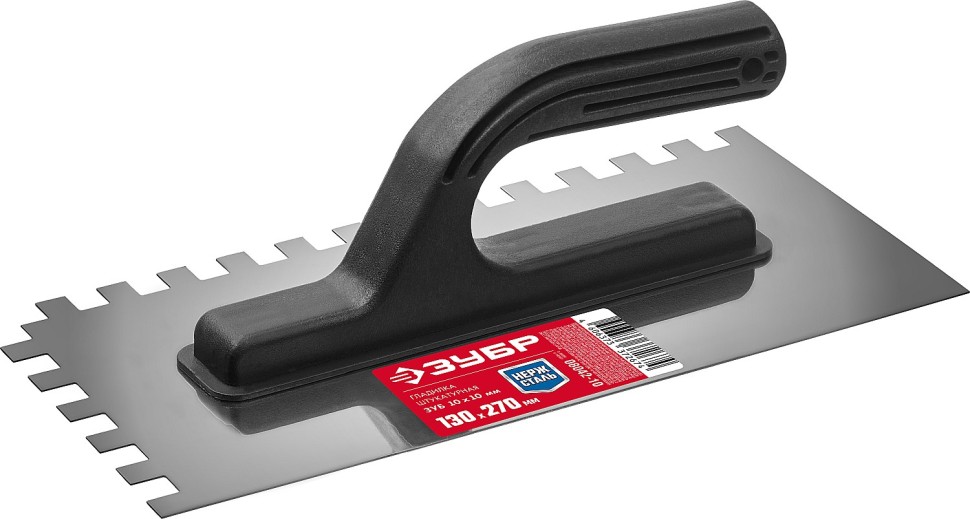 - Гладилка зубчатая 270*130мм, нерж.зуб 10*10 мм Стройтекс