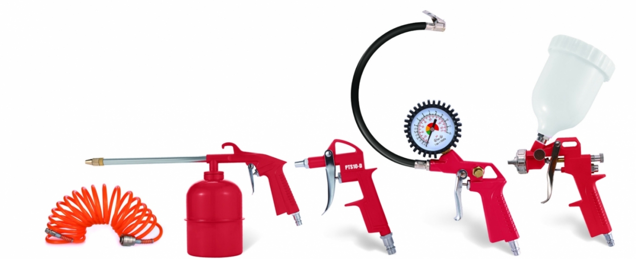 - КомплектацияКраскопульт, пистолет для подкачки шин, пистолет для продувки, пистолет для промывки и смазки, шланг