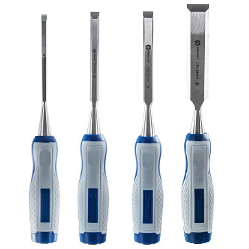 - Набор стамесок КОБАЛЬТ плоских: 6,12,18,24х140мм, CR-V,дерев. рукоятка,точ.камень (4шт.) 245-893