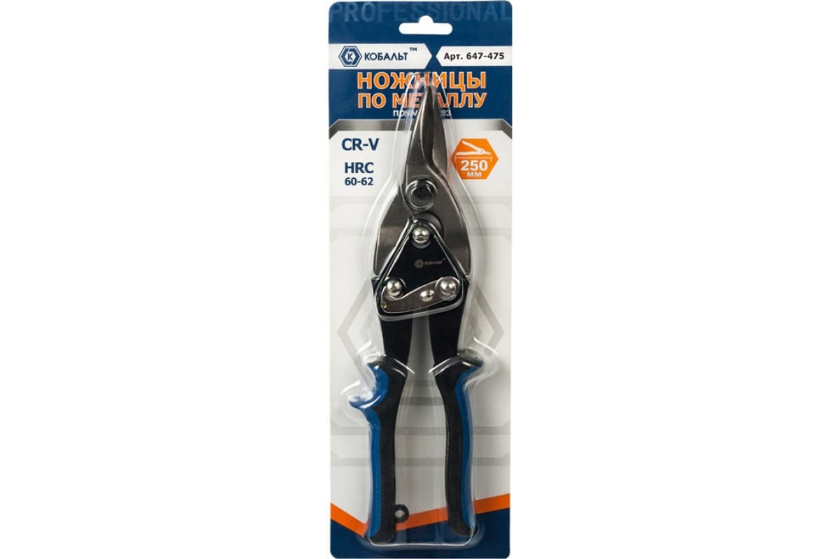 Ножницы по металлу ручные КОБАЛЬТ прямой рез 250 мм, CR-V