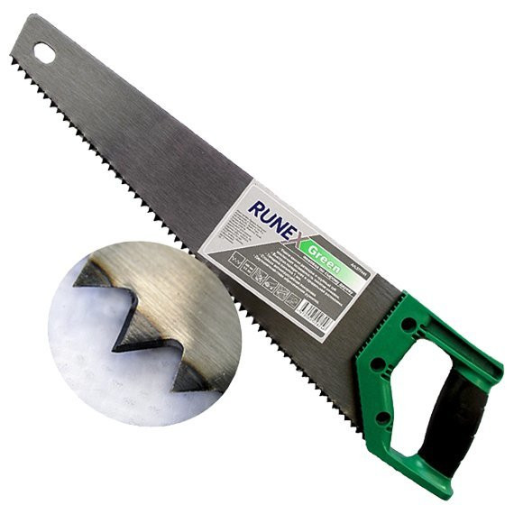 - Ножовка по сырому дереву 400 мм прямой крупный зуб "Runex Green" 577441