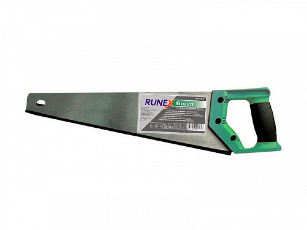 Ножовка по сырой древесине Runex Green 400мм прямой крупный зуб подойдет для продольной и поперечной распиловки. Увеличенная разводка и крупный прямой зуб исключают зажатие полотна в сырой древесине.Характеристики