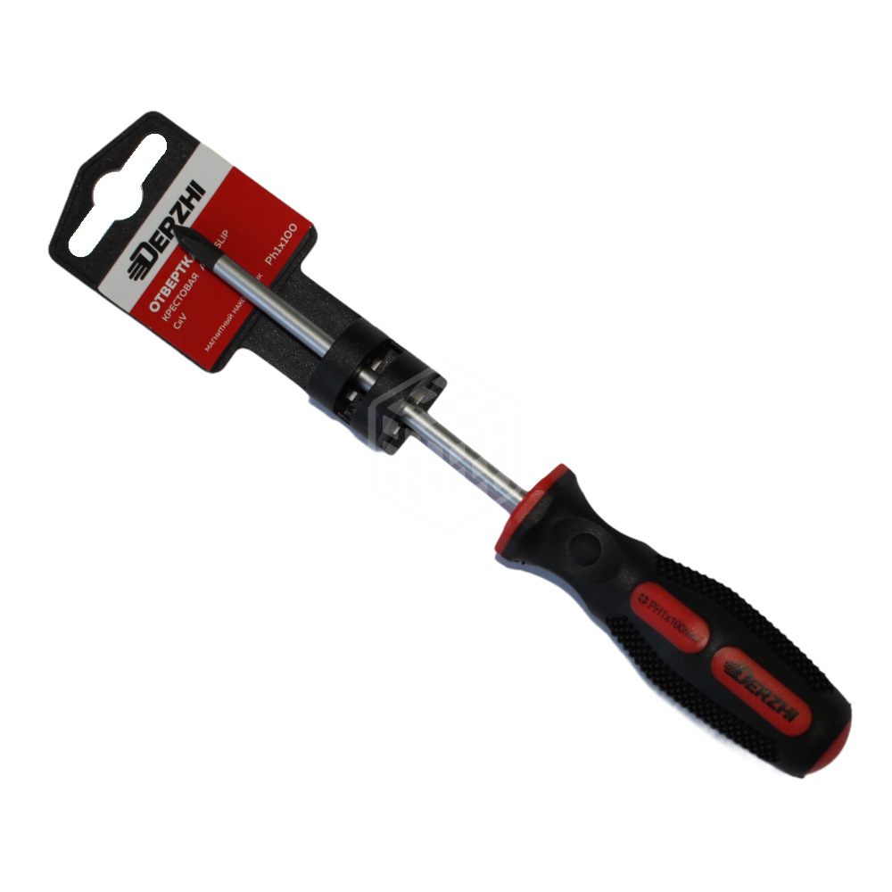- Отвертка DERZHI крестовая с обрезиненной рукояткой PH1*100 3131-110