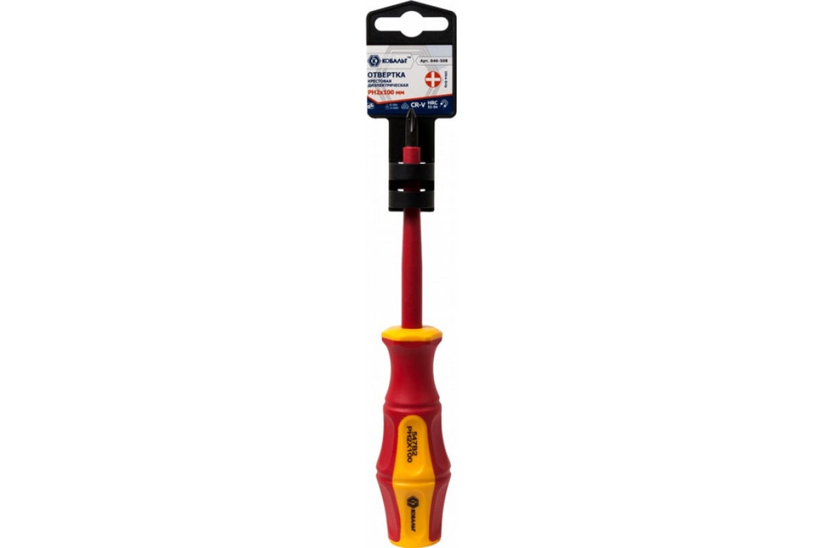 - Отвертка крестовая диэлектрическая КОБАЛЬТ Ultra Grip PH-2 х 100 мм CR-V, двухкомпонентная рукоятка
