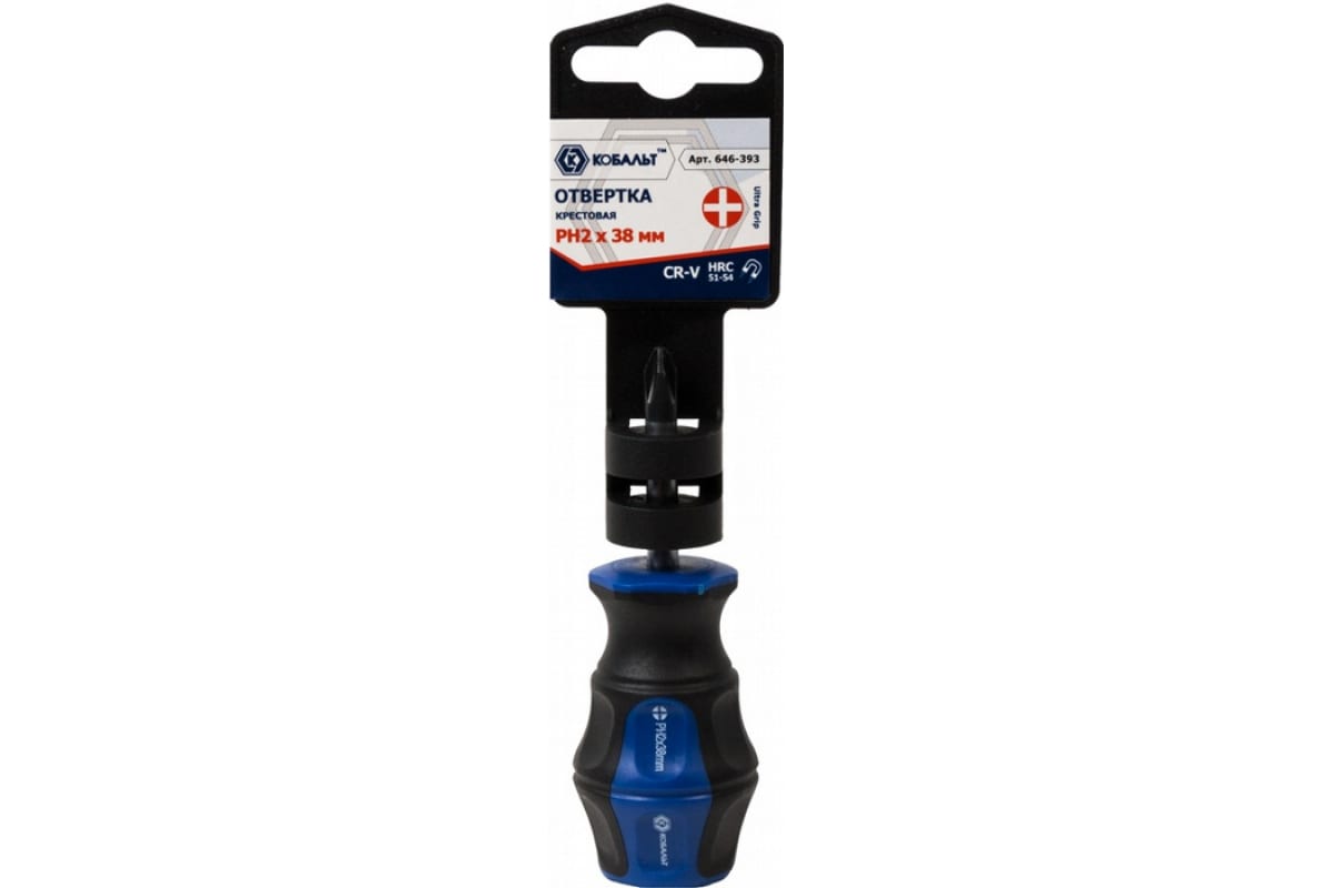 - Отвертка крестовая Ultra Grip КОБАЛЬТ PH-2 х 38 мм CR-V, двухкомпонентная рукоятка