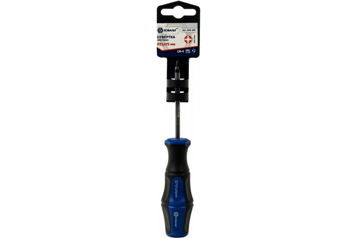 - Отвертка крестовая Ultra Grip КОБАЛЬТ PZ-1 х 75 мм CR-V, двухкомпонентная рукоятка