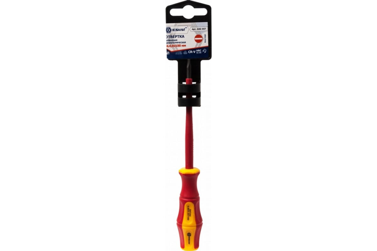 - Отвертка шлицевая диэлектрическая КОБАЛЬТ Ultra Grip SL 4,0 х 100 мм CR-V, двухкомпонентная рукоятка