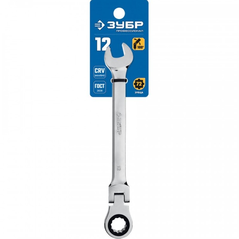 - Комбинированный гаечный ключ трещеточный шарнирный 12 мм,ЗУБР