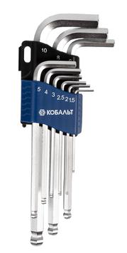 Набор ключей угловых шестигранных КОБАЛЬТ 1.5, 2, 2.5, 3, 4, 5, 6, 8, 10 мм с шаром Cr-V (9 шт.) бли