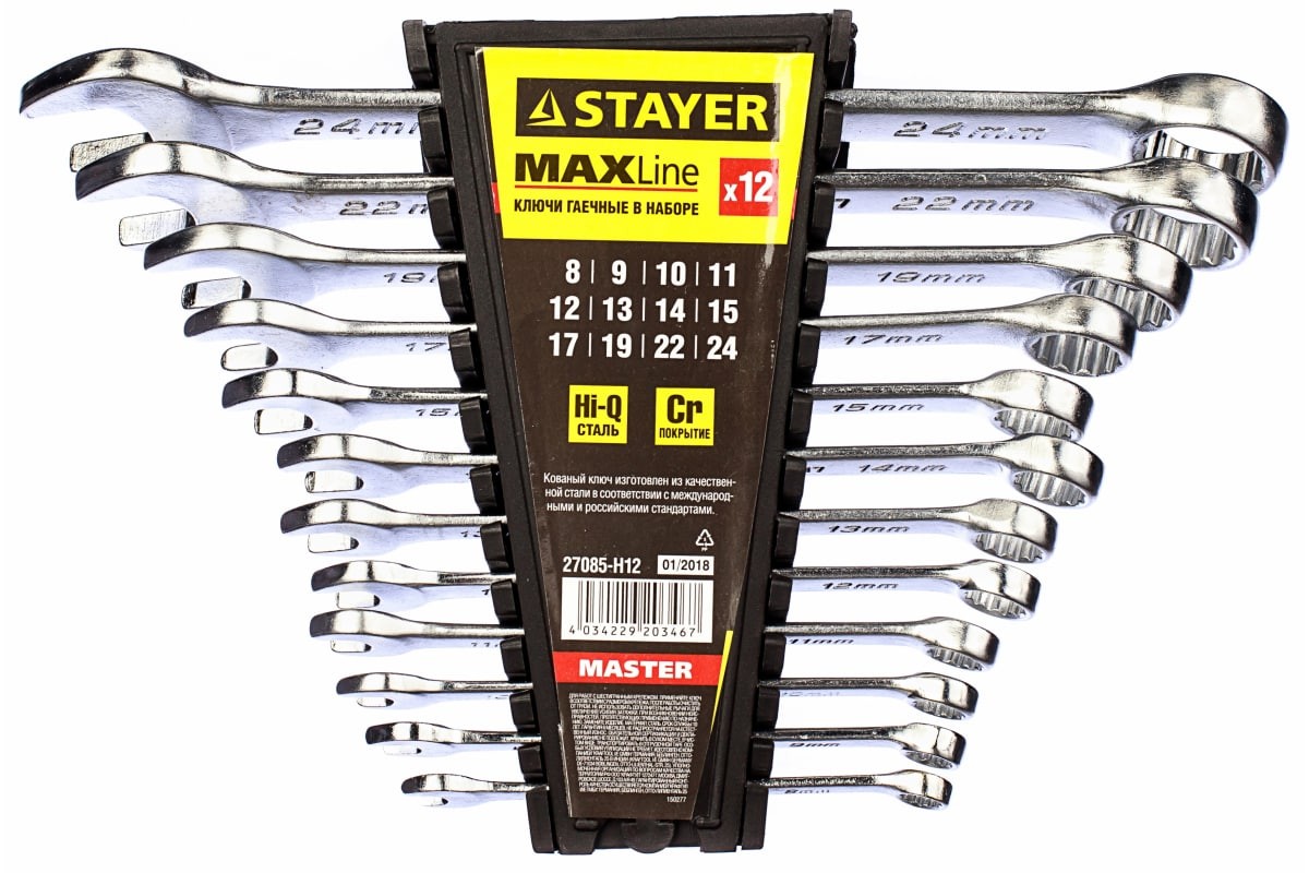 - Набор комбинированных гаечных ключей 12 шт.,8-24мм,STAYER