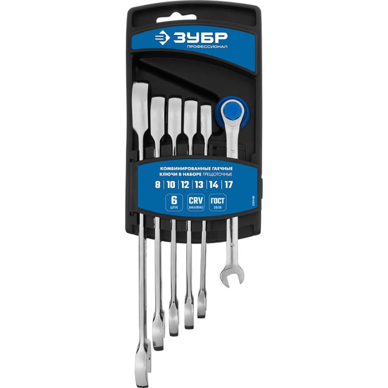 Набор комбинированных гаечных ключей трещоточных 6 шт.,8-17мм ЗУБР