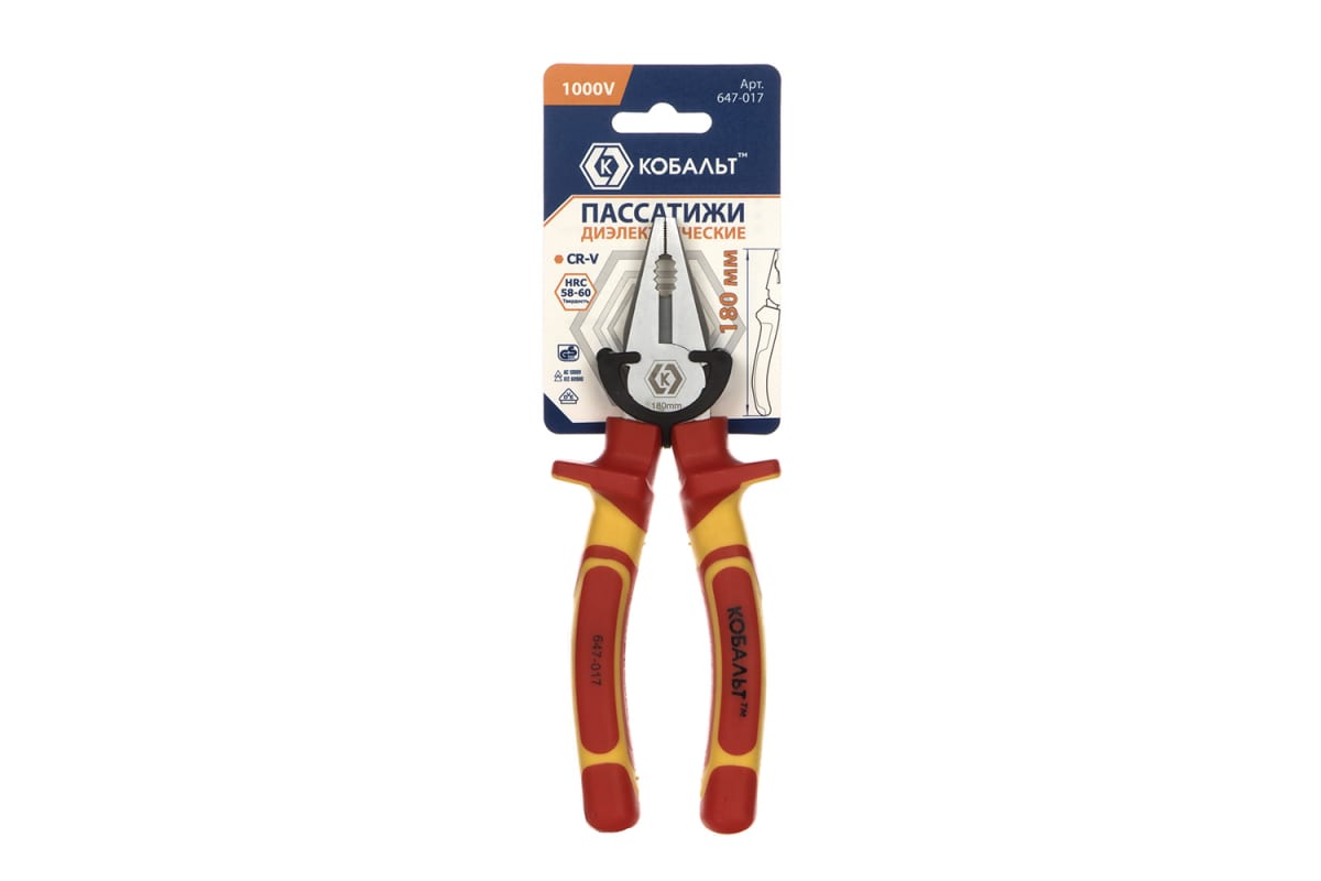 Пассатижи КОБАЛЬТ диэлектрические, 180 мм, CR-V