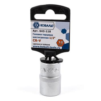 - Головка торцевая 1/2, 18мм,Cr-V (1шт) подвес, КОБАЛЬТ