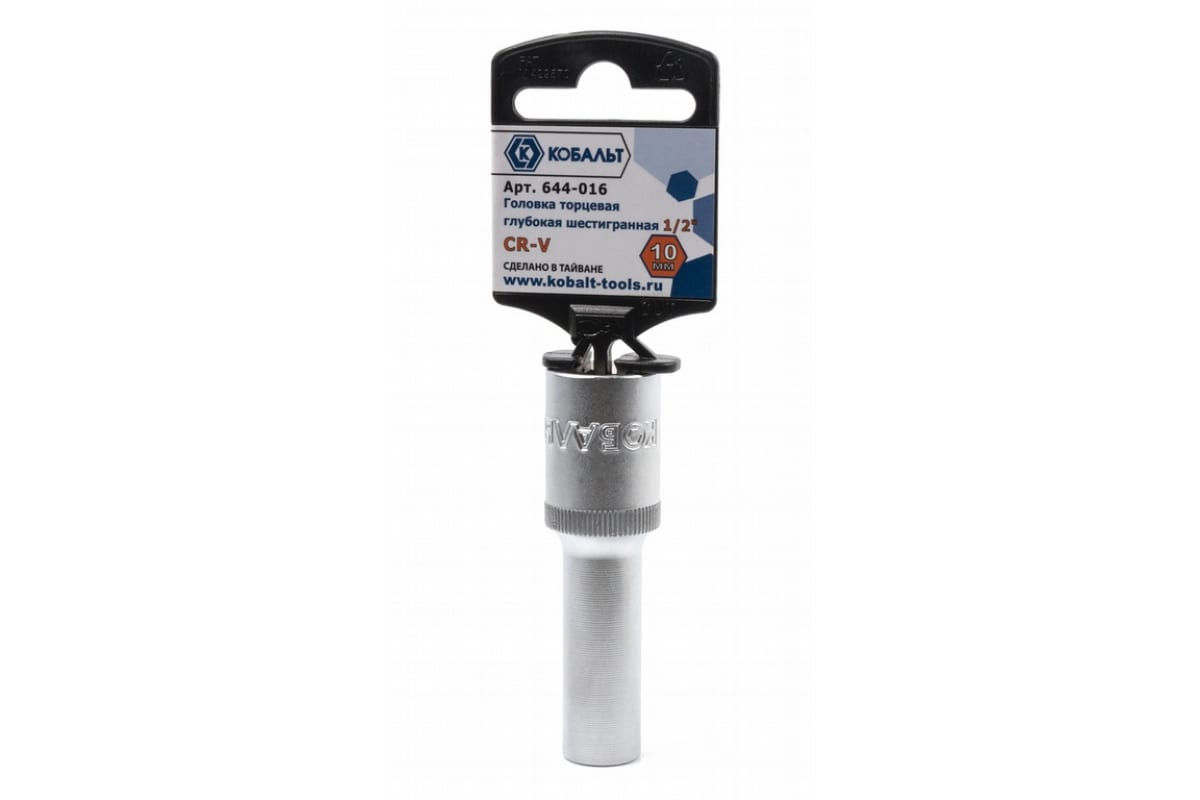 - Головка торцевая глубокая 1/2", 10 мм, Cr-V (1 шт.) подвес КОБАЛЬТ