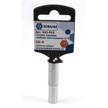 - Головка торцевая глубокая 1/4,7мм,Cr-V (1шт) подвес, КОБАЛЬТ