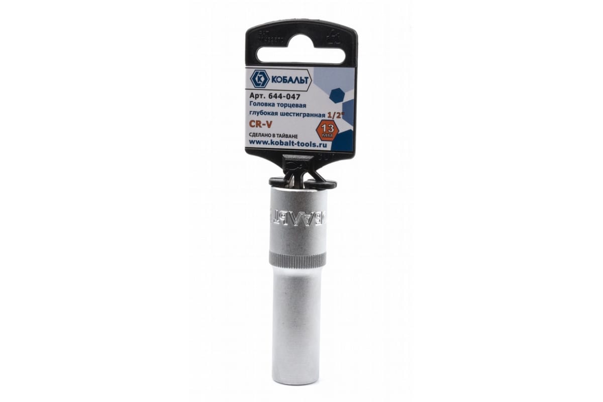 - Головка торцевая глубокая КОБАЛЬТ 1/2", 13 мм, Cr-V (1 шт.) подвес