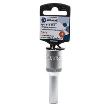 - Головка торцевая глубокая КОБАЛЬТ 1/2", 8 мм, Cr-V (1 шт.) подвес