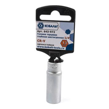 - Головка торцевая глубокая КОБАЛЬТ 1/4", 13 мм, Cr-V (1 шт.) подвес