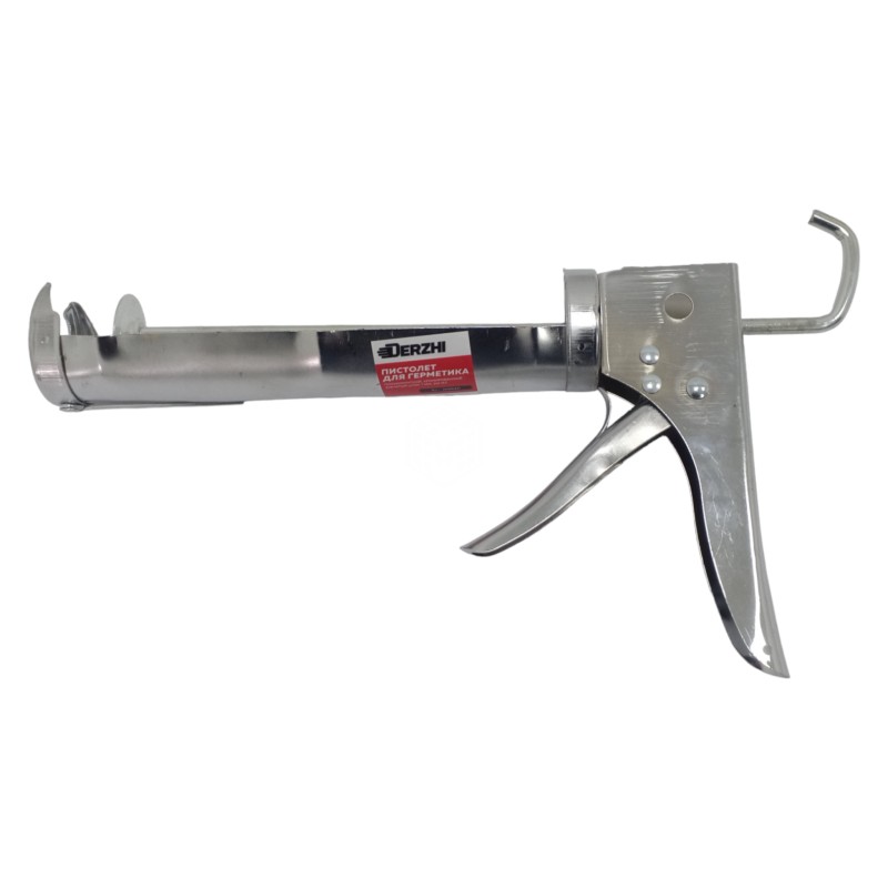 - Пистолет для герметика DERZHI полукорпусной хром. 310 мл,зубчат.шток 7мм, 388640
