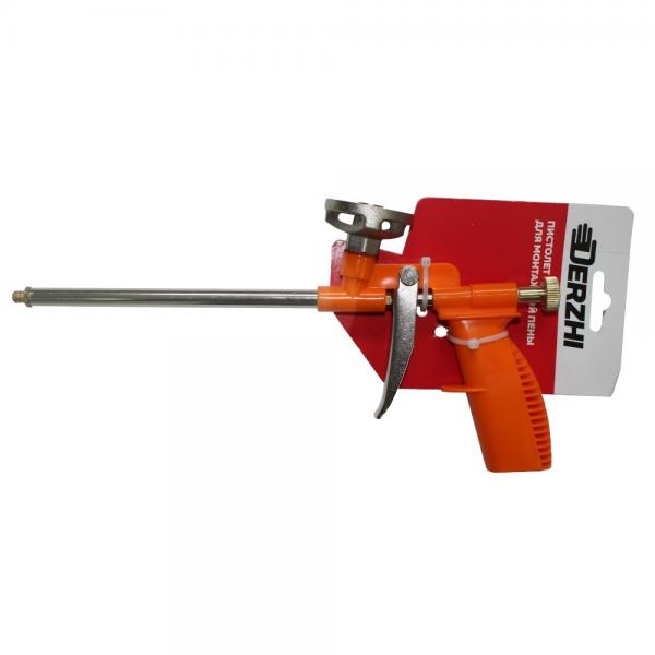 - Пистолет для монтажной пены DERZHI облегченный металлический корпус, ствол из нержавеющей стали