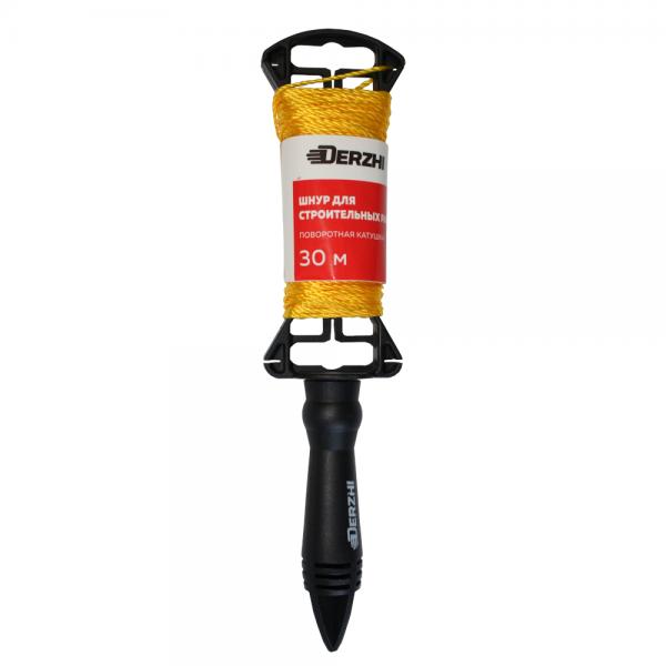 Шнур для строительных работ Derzhi, на катушке, 30 м применяется в качестве ориентира прямолинейности при кладке стен из кирпича, строительных блоков и т.п. Особенностью данного вспомогательного средства является наличие удобной катушки, которая позволяет оперативно смотать шнур по завершению работы. Кроме того эргономичная рукоятка не выскальзывает из рук пользователя во время выполнения профильных задач.Характеристики