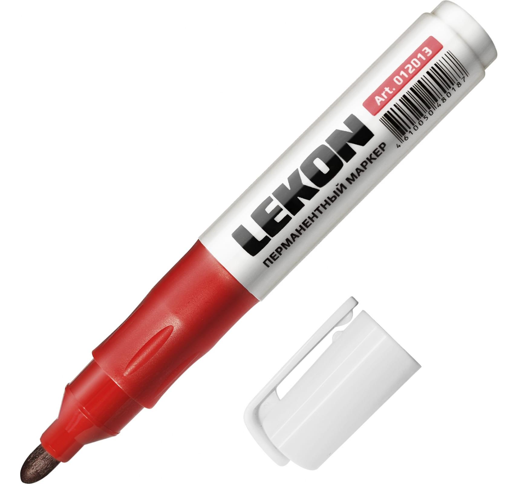 - Маркер перманентный заправляемый лин.3,0мм красный LEKON 012013