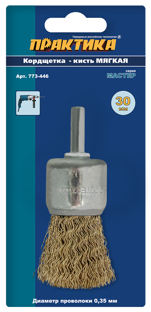 - Кордщетка для дрели кистеобразная мягкая ПРАКТИКА 30мм хвост 6мм