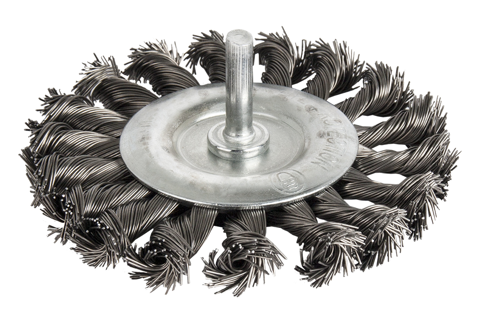 Кордщетки радиальные витые с хвостовиком. Серия "Мастер". Кордщетка для дрели. Хвостовик 6 мм для закрепления в патроне. Витая стальная проволока. Для грубой обработки деревянных и металлических поверхностей, снятия краски, ржавчины.Характеристики