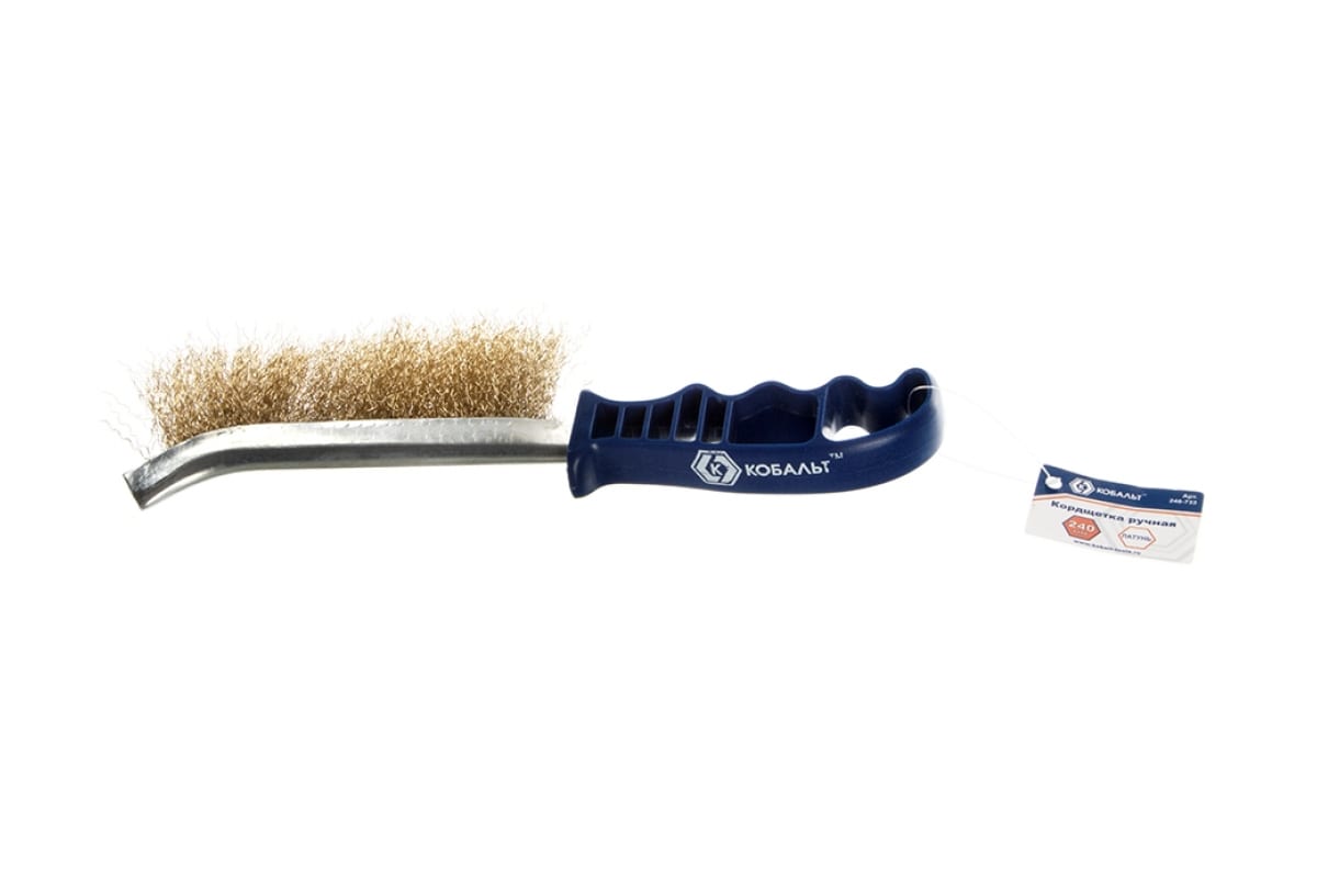 - Кордщетка ручная КОБАЛЬТ стальная латунированная 240 мм, пластмассовая ручка