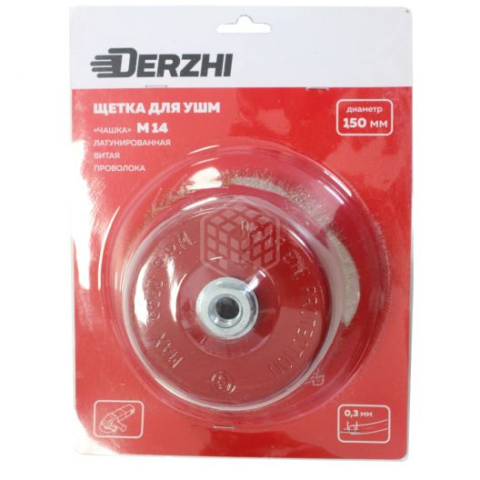 Щетка DERZHI для УШМ, чашка 150 мм М14 латунированная витая проволока 874607