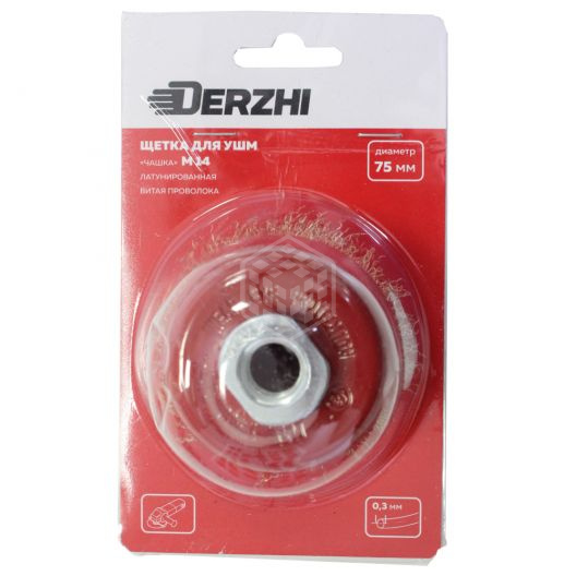 Щетка DERZHI для УШМ, чашка 75 мм М14 латунированная витая проволока 874604