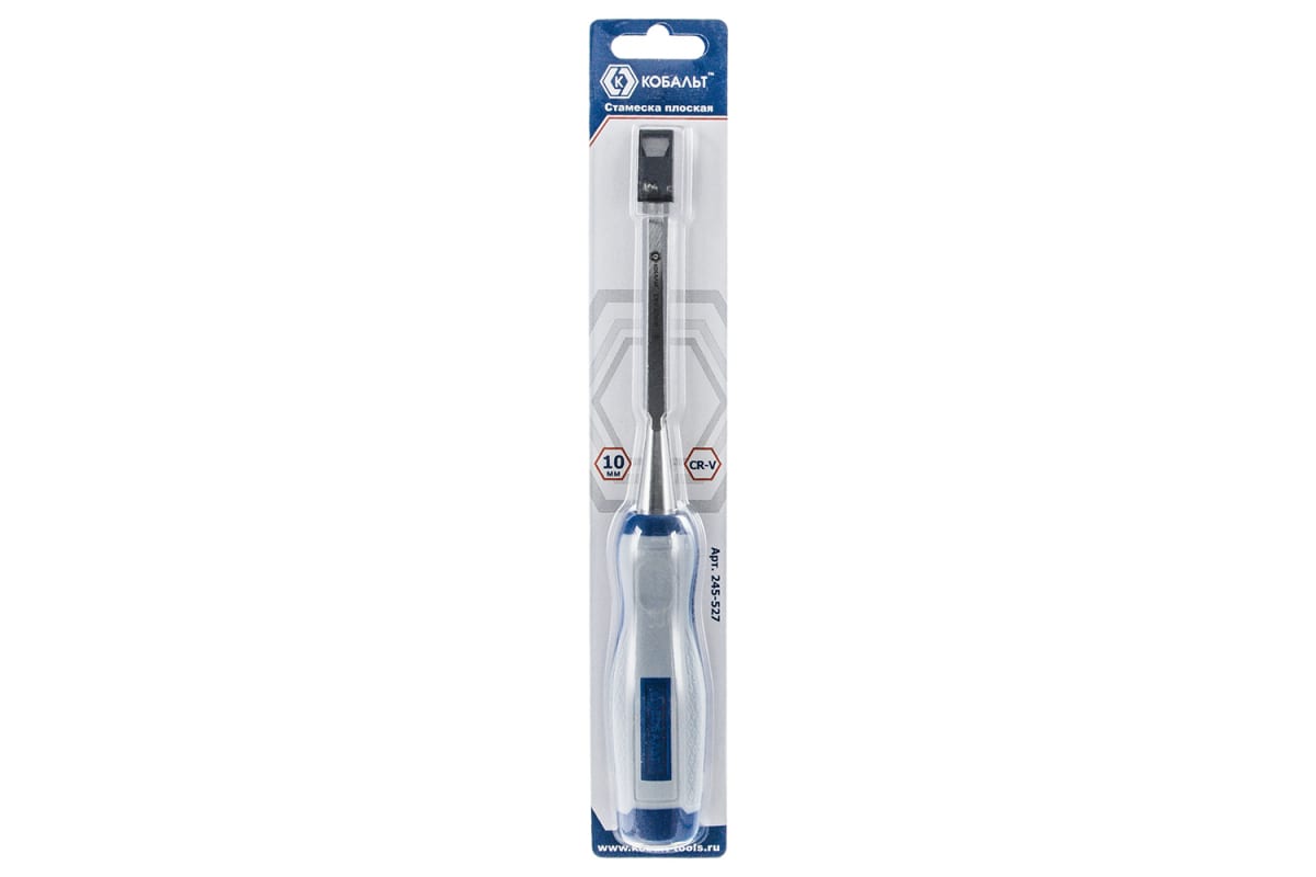 - Стамеска плоская КОБАЛЬТ 10 х 140 мм, CR-V, двухкомпонентная рукоятк
