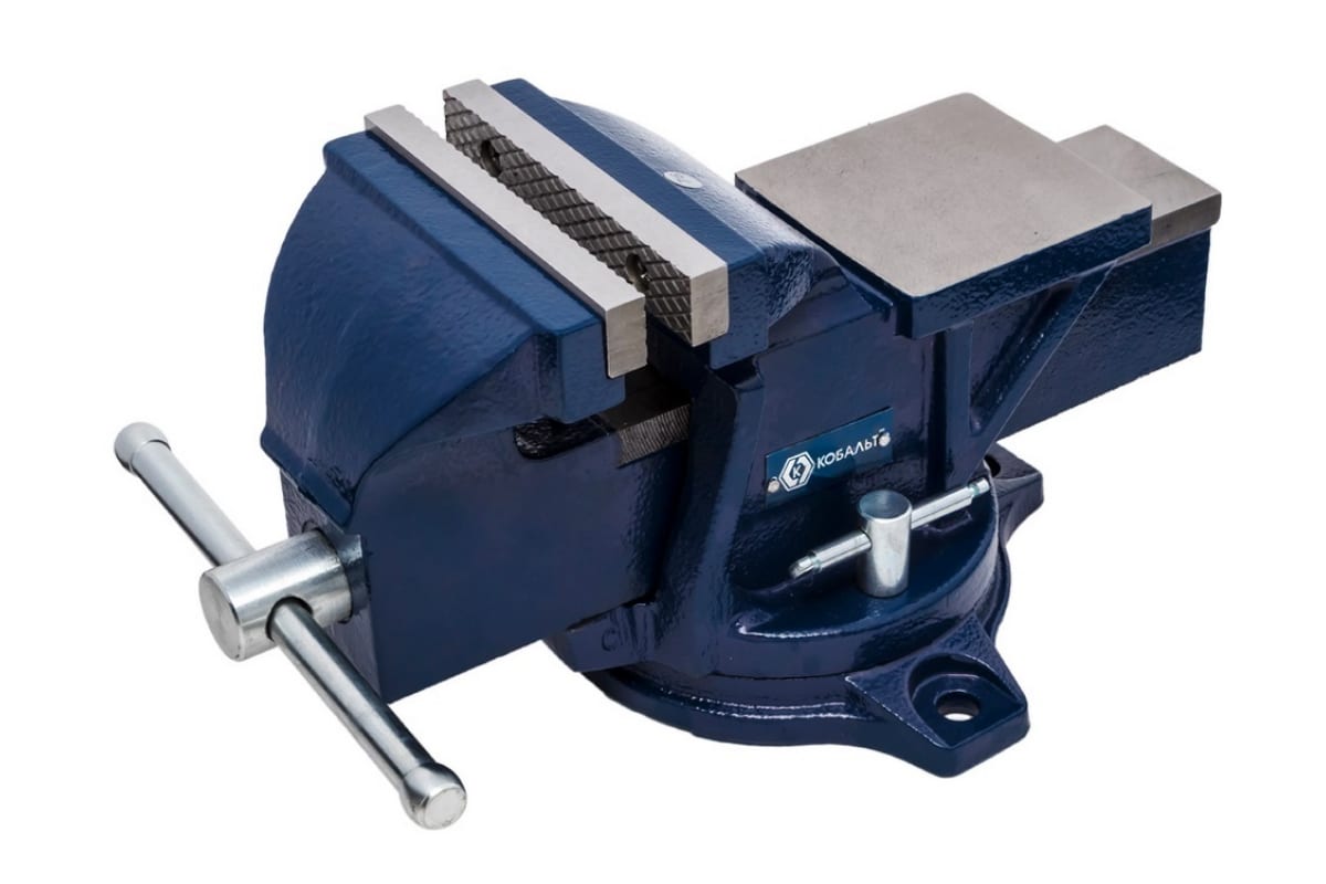 - Тиски слесарные поворотные КОБАЛЬТ ширина губок 125 мм, захват 130 мм, 13 кг, наковальня, коробка